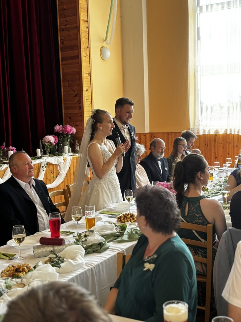 • Mikrofony jsou k dispozici pro proslovy, přípitky i improvizované vstupy, vše je ozvučeno a připraveno včas.